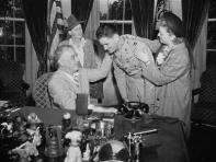 Joe Foss receiving the Medal of Honor from President Franklin D. Roosevelt, as his wife and mother look on.