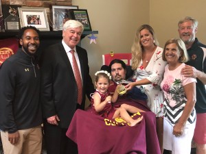 The following story of this singularly heroic man and his wonderful family, which was done for the Varsity Club’s Hall of Fame induction ceremony on September 7, 2018, appears below.