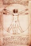The drawing, in Isaacson’s description, “embodies a moment when art and science combines to allow mortal minds to probe timeless questions about who we are and how we fit into the grand order of the universe.  It also symbolizes an ideal of humanism that celebrates the dignity, value, and rational agency of humans and individuals. Inside the square and the circle we can see the essence of Leonardo da Vinci, and the essence of ourselves, standing naked at the intersection of the earthly and the cosmic.”