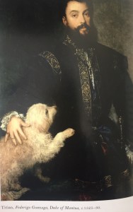 That’s a great answer for Final Jeopardy, so keep it in mind. But more amusing, and an example of Collis Harvey’s fine eye for history that we can relate to, is the story behind Titian’s painting of Federico Gonzaga, Duke of Mantua. Federico was on the make and targeting Margherita, heiress to the Marquis of Monferrato. Problem was, as Collis Harvey relates, the Gonzagas were “notoriously bad husband material,” and the heiress was hesitating.
